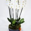 Siyah seramik dekoratif vazoda 2 dal beyaz phalenopsis orkide ve kuru bitki aranjmanı ile sevdiklerinize kalıcı bir çiçek ile duygularınızı iletebilirsiniz.